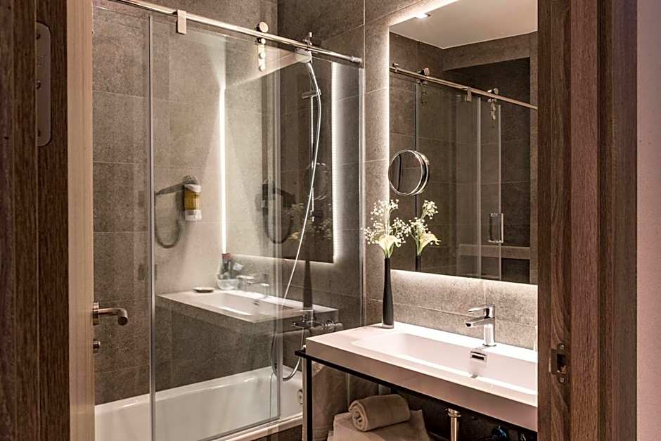 The double room provides air conditioning, a wardrobe, as well as a private bathroom featuring a shower and a hairdryer. This double room features parquet floors, heating, a flat-screen TV and city views. The unit offers 2 beds.